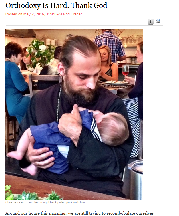 Rod sez: "Last night at the barbecue, my friend Chris and I were talking about how exhausting it all is, but how we wouldn’t trade it for anything. “It’s like Navy SEAL training,” said Chris. I smiled, because I had made that same comparison in an e-mail to a friend the day before. This is Church as training for spiritual athletes. Mind you, monks, both Orthodox and traditional Catholic, have a far more rigorous schedule, but for lay Christians, there is simply nothing as demanding as ordinary Orthodox liturgical life during Lent and Holy Week."